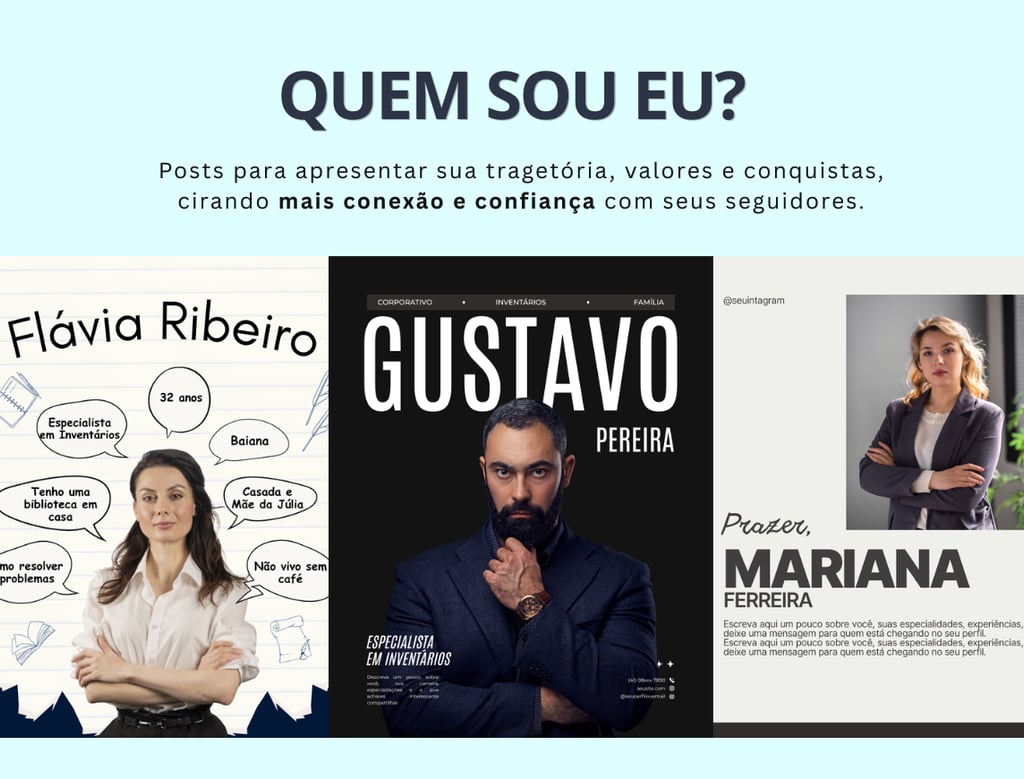 Você receberá mais de 100 artes prontas para se tornar autoridade no seu perfil!